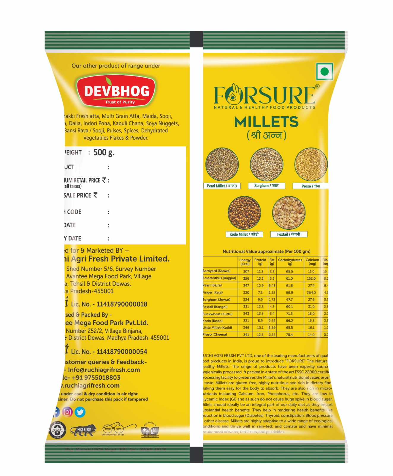 Uttar Pradesh & Andhra Pradesh which is customize as per client requirements. We provide Barnyard millets which